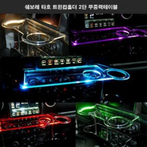 쉐보레 타호 트윈컵홀더 2단 무중력테이블 USB 5V LED 차량용 식탁 선반 트레이 핸드폰 스마트폰 거치대 컵홀더 수납용품