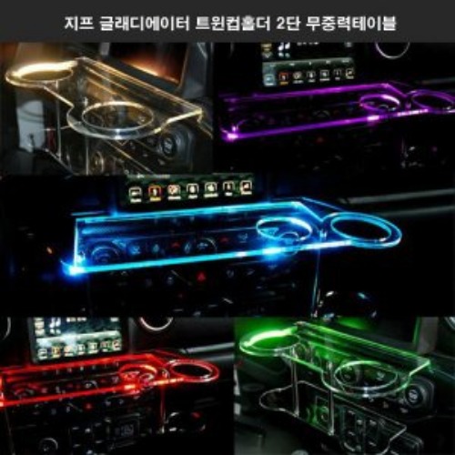 지프 글래디에이터 트윈컵홀더 2단 무중력테이블 USB 5V LED 차량용 식탁 선반 트레이 핸드폰 스마트폰 거치대 컵홀더...