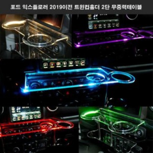 포드 익스플로러 2019이전 트윈컵홀더 2단 무중력테이블 USB 5V LED 차량용 식탁 선반 트레이 핸드폰 스마트폰 거...