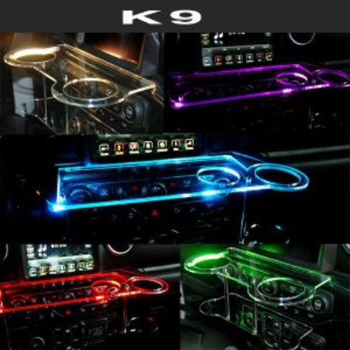 더뉴K9 2018이전 트윈컵홀더 2단 무중력테이블 USB 5V LED 차량용 식탁 선반 트레이 스마트폰 거치대