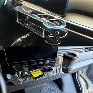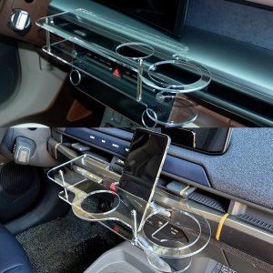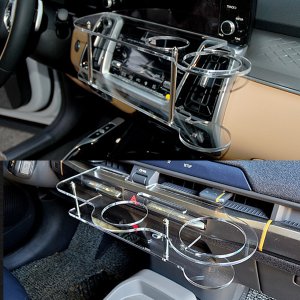 더뉴 쏘렌토 MQ4 페이스리프트 LED 2단 무중력테이블 차량용 컵홀더 식탁 트레이 스마트폰 핸드폰 홀더 수납 거치대(2...