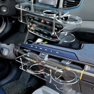 아이오닉6 LED 2단 무중력테이블 차량용 컵홀더 식탁 트레이 스마트폰 핸드폰 홀더 수납 거치대(2세대) led없음