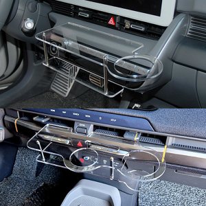 아이오닉5 LED 2단 무중력테이블 차량용 컵홀더 식탁 트레이 스마트폰 핸드폰 홀더 수납 거치대(2세대) led없음